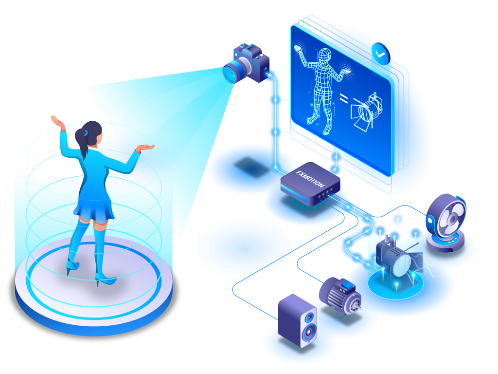 FXMotion has limitless poses and movements as inputs. The system is highly adaptable to diverse user interactions and is designed to capture a wide variety of moves. There’s extensive versatility of control elements, compatible with a broad range of devices that accept digital or physical signals. FXMotion uses next-generation AI algorithms to interpret human movements and poses, setting a new benchmark for interactive technology.