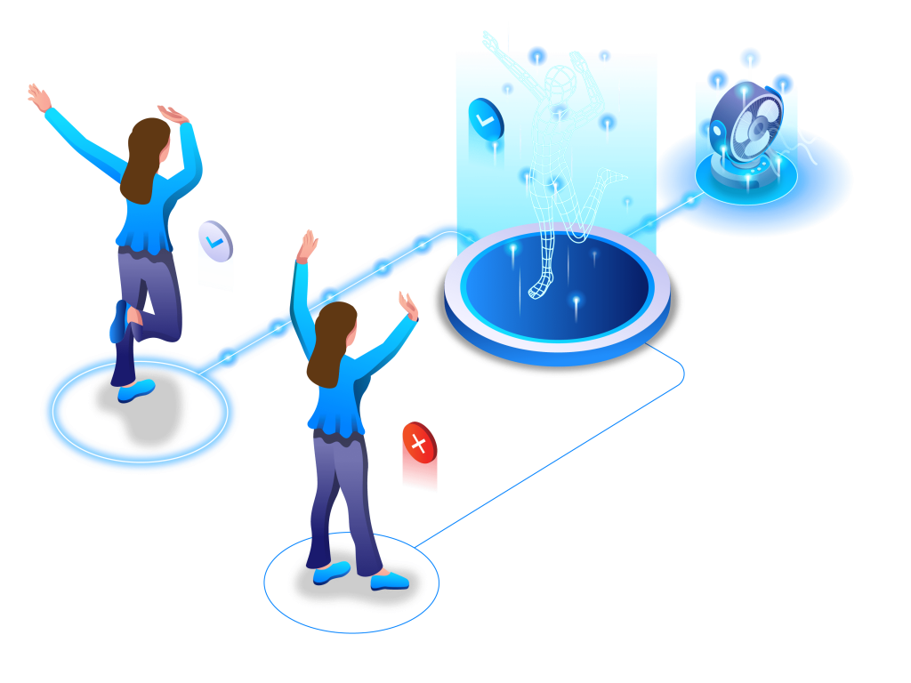 The system utilises advanced algorithms to recognise users’ poses by capturing their movements in real-time. Based on these identified poses, the system can trigger a variety of predefined actions across different technologies. Whether it’s turning on lights, controlling a ride, or activating a sound system, the pose acts as the trigger for the action. This provides a highly responsive and interactive environment where human movement directly results in real-world or digital outcomes, creating a seamless user experience.