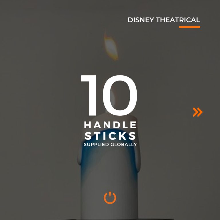 Early into the tour, Disney Theatrical UK approached LUMINOUS to see if we could help them upgrade their existing handheld flame effects. Aptly named the ‘Handlesticks’; these props form part of Lumière’s costume and are a focal point of many scenes throughout the live stage performance.