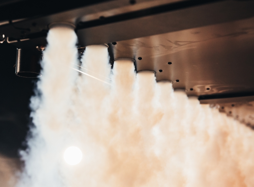 Equipped with 22 nozzles, the Cryo Curtain delivers a dense, laminar flow of white fog that can create mesmerising effects. The modular design allows you to connect multiple 2.4m units, enabling you to produce an even larger spectacle. When suspended from a height, the SMOKE-TECH can be used in a variety of creative ways, including:
